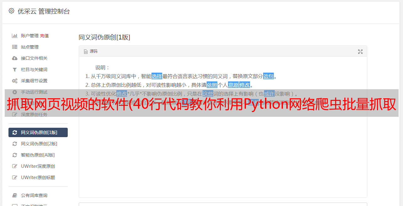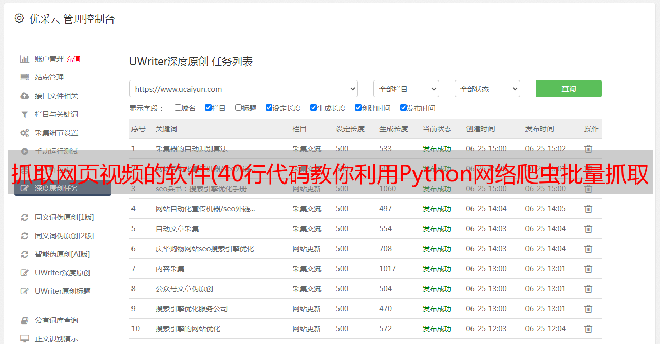 优采云 发布时间: 2021-09-16 02:03抓取网页视频的软件(40行代码教你利用Python网络爬虫批量抓取小视频(组图))