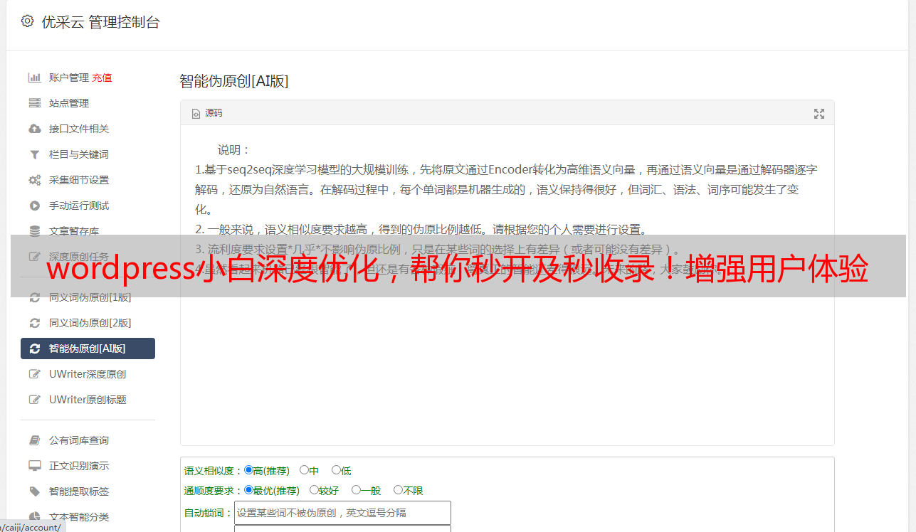 优采云 发布时间: 2020-08-24 22:24wordpress小白深度优化,帮你秒开及秒收录!增强用户体验