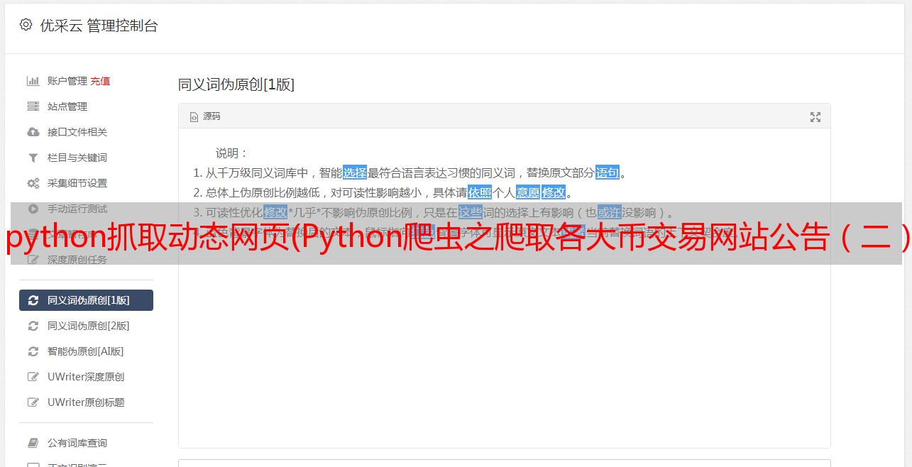 优采云 发布时间: 2021-09-16 14:03python抓取动态网页(Python爬虫之爬取各大币交易网站公告(二)