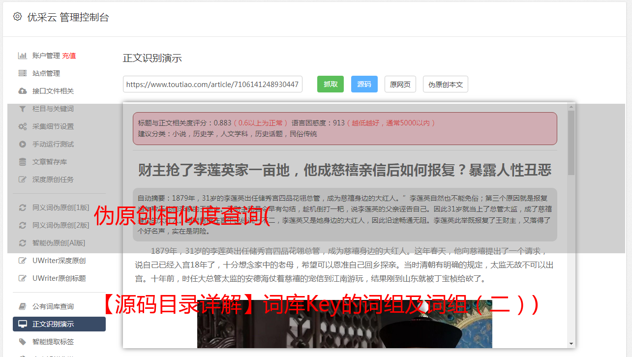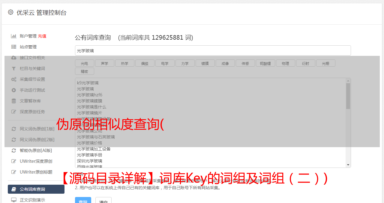 伪原创相似度查询( 【源码目录详解】词库Key的词组及词组(二))