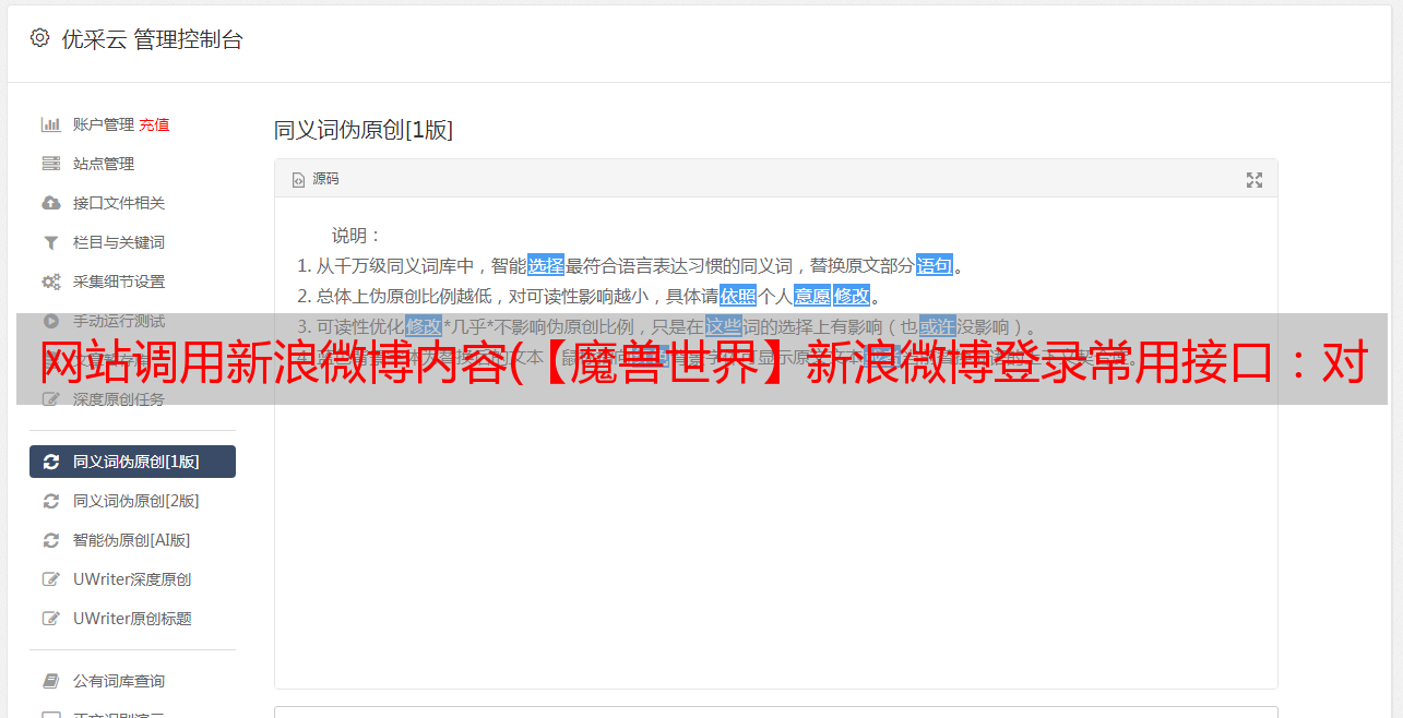 优采云 发布时间: 2021-09-17 22:18网站调用新浪微博内容(【魔兽世界】新浪微博登录常用接口:对应主界面)