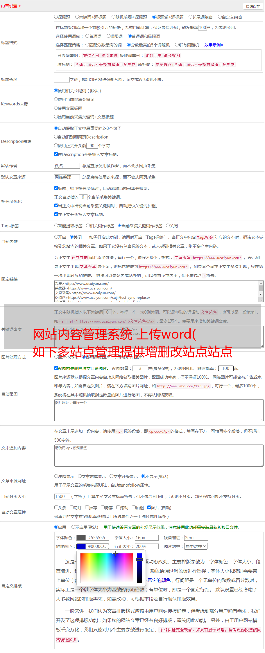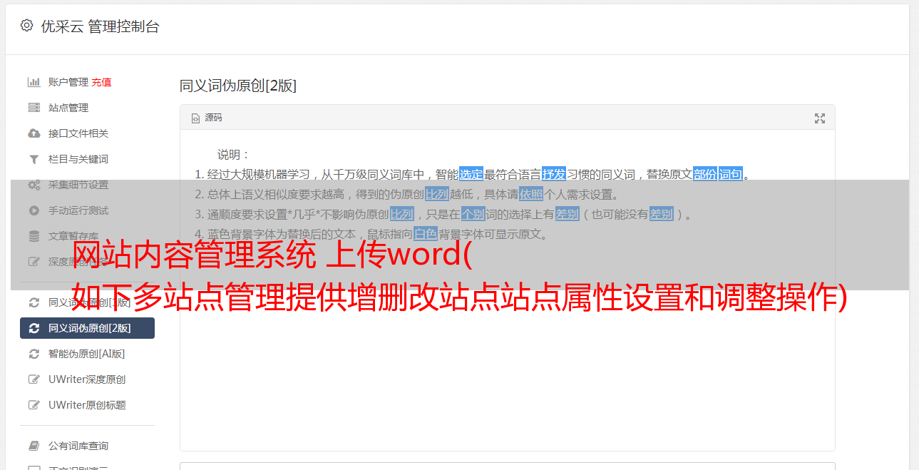 网站内容管理系统 上传word( 如下多站点管理提供增删改站点站点属性设置和调整操作)