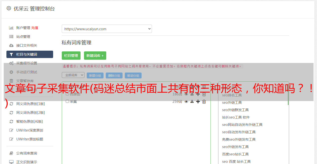 采集composition是目前主流的SEO内容生成方法,程序实现相对简单,因此涌现了大量优秀的程序,包括一定数量的采集和一定数量的8个内容工件等