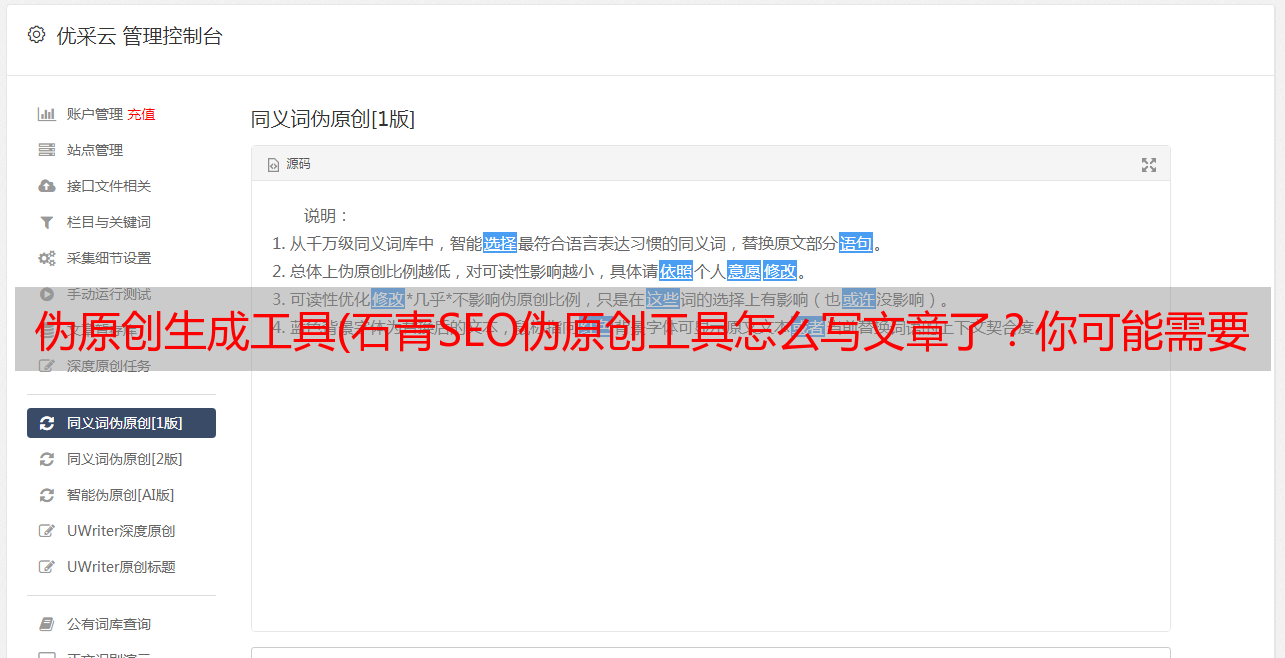 伪原创生成工具(石青SEO伪原创工具怎么写文章了?你可能需要石青)