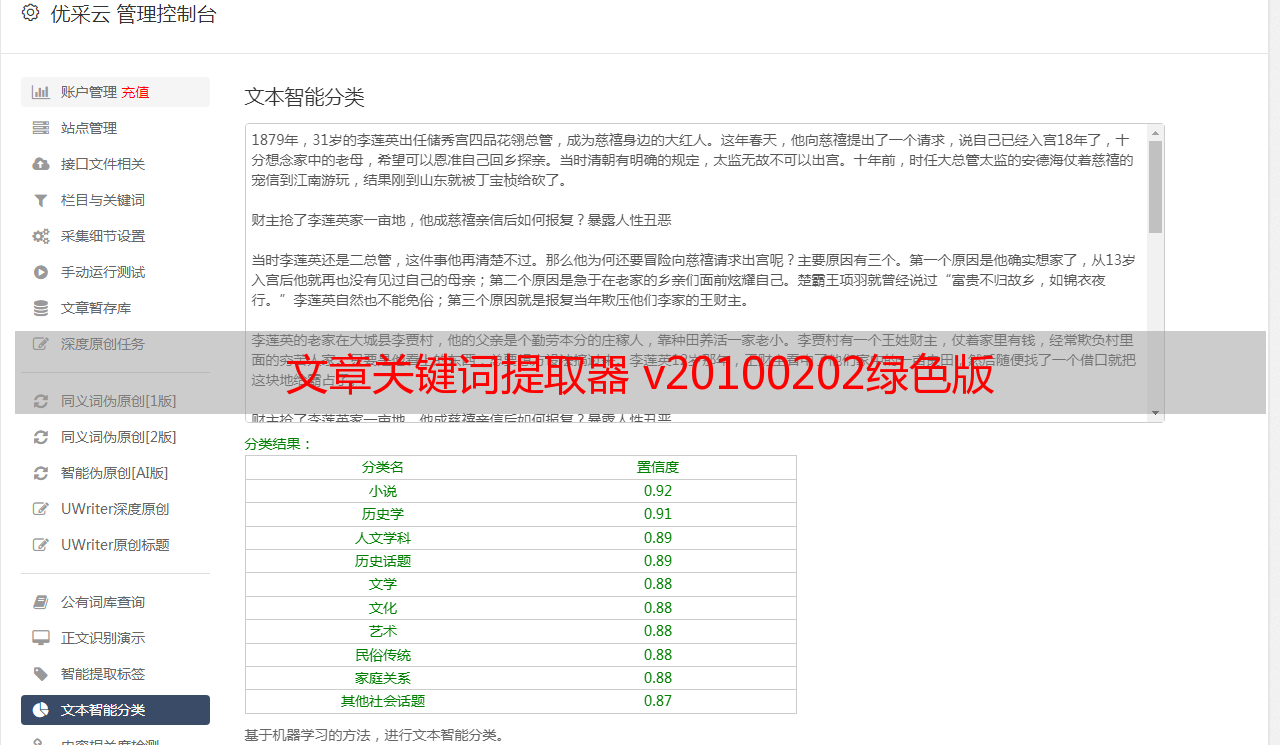 优采云 发布时间: 2020-08-25 18:36文章关键词提取器 v20100202绿色版