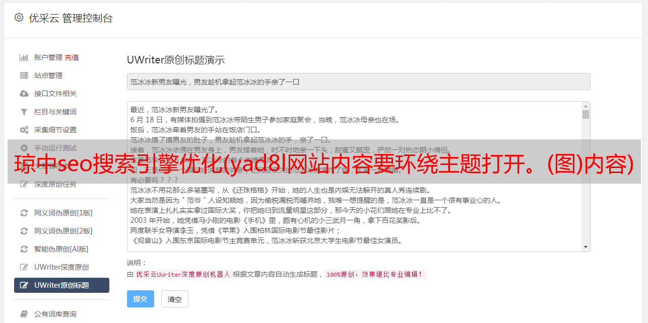 优采云 发布时间: 2021-09-19 06:14琼中seo搜索引擎优化(yad8l网站内容要环绕主题打开。(图)内容)