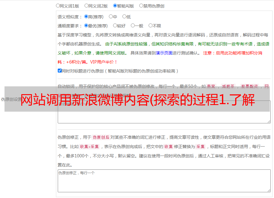 优采云 发布时间: 2021-09-19 12:06网站调用新浪微博内容(探索的过程1.了解大致过程登陆微博,文章可能不再适用)