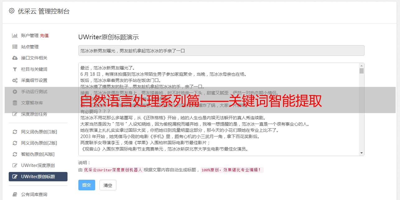 优采云 发布时间: 2020-08-25 19:32自然语言处理系列篇——关键词智能提取