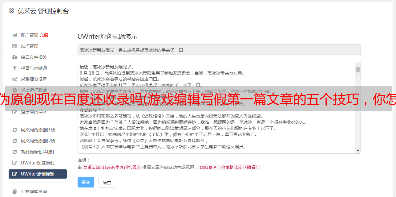 优采云 发布时间: 2021-09-20 05:03伪原创现在百度还收录吗(游戏编辑写假第一篇文章的五个技巧,你怎么做?