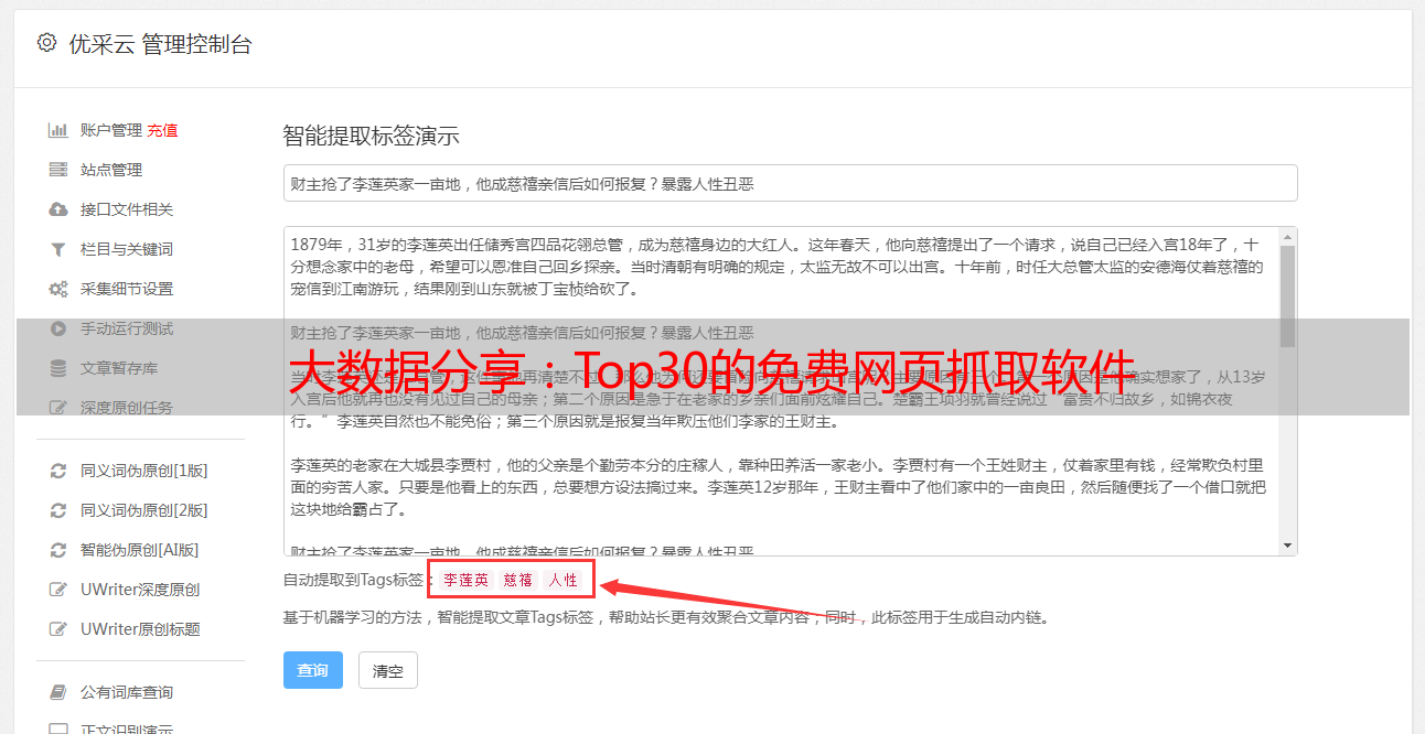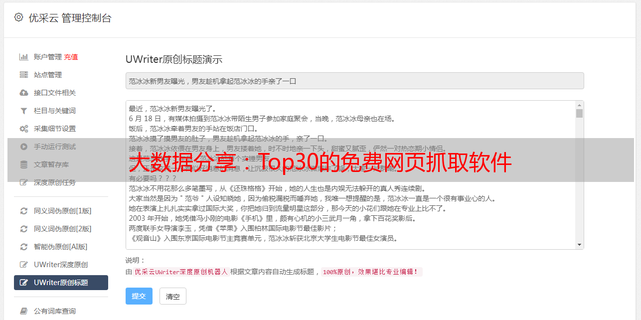 优采云 发布时间: 2020-08-25 22:16大数据分享:Top30的免费网页抓取软件