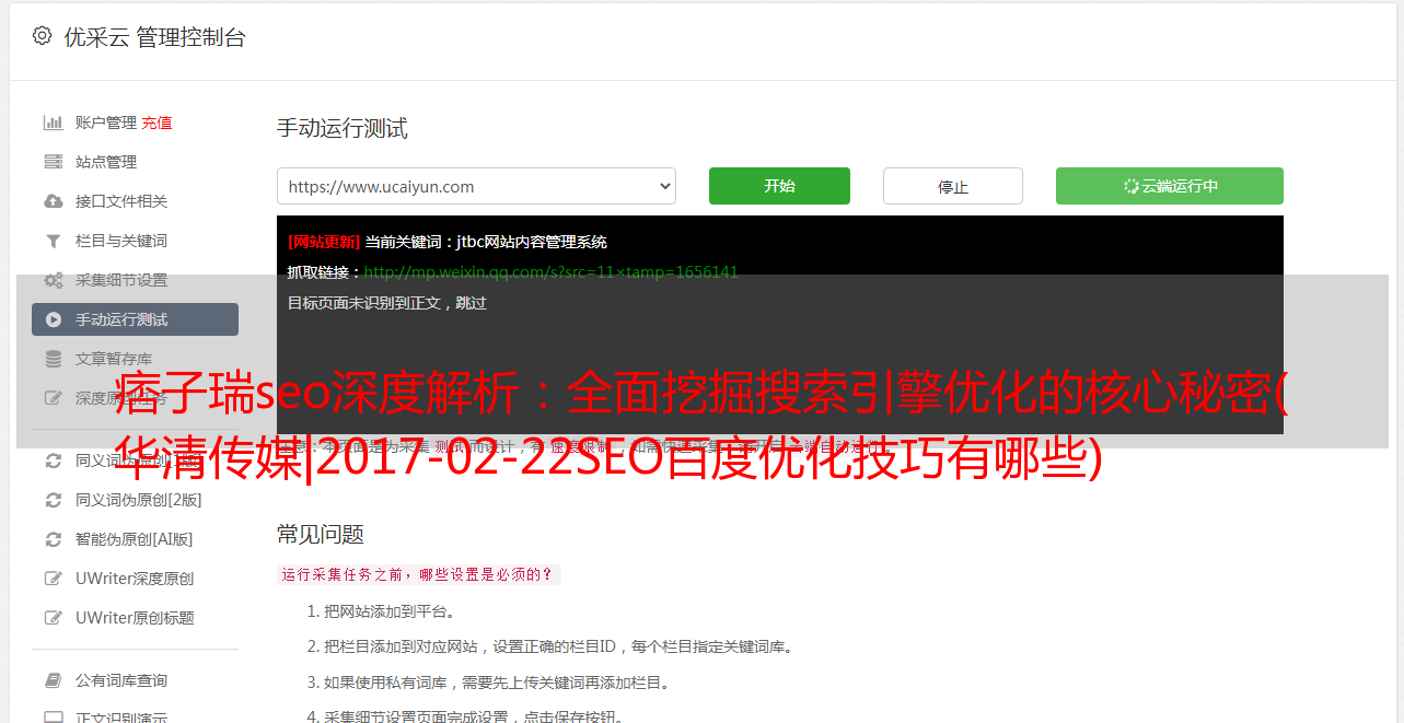 痞子瑞seo深度解析:全面挖掘搜索引擎优化的核心秘密( 华清传媒|2017-02-22SEO百度优化技巧有哪些)