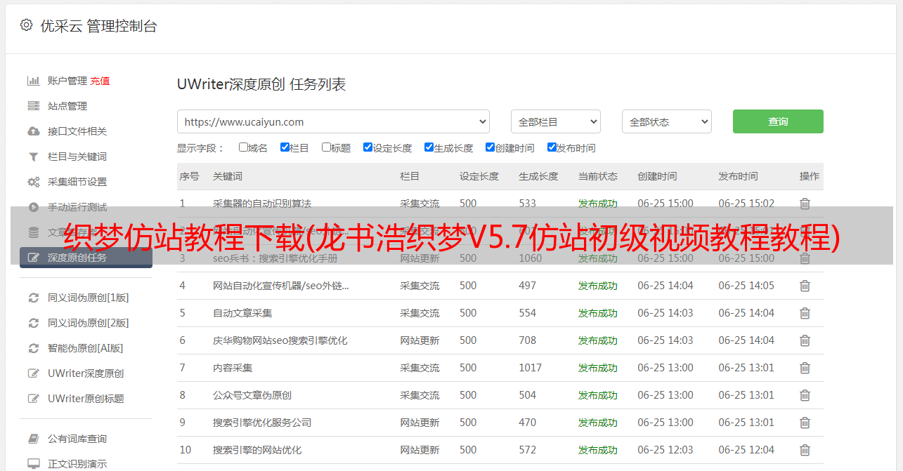 优采云 发布时间: 2021-09-21 03:21织梦仿站教程下载(龙书浩织梦V5.7仿站初级视频教程教程)