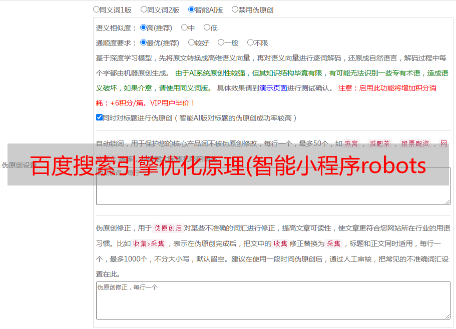 百度搜索引擎优化原理(智能小程序robots设置参考《轻松两步识别百度蜘蛛》)