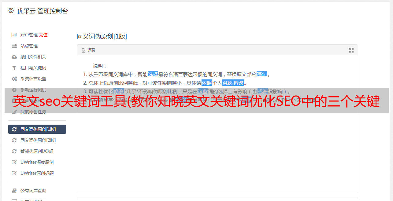 优采云 发布时间: 2021-09-21 06:04英文seo关键词工具(教你知晓英文关键词优化SEO中的三个关键因素)