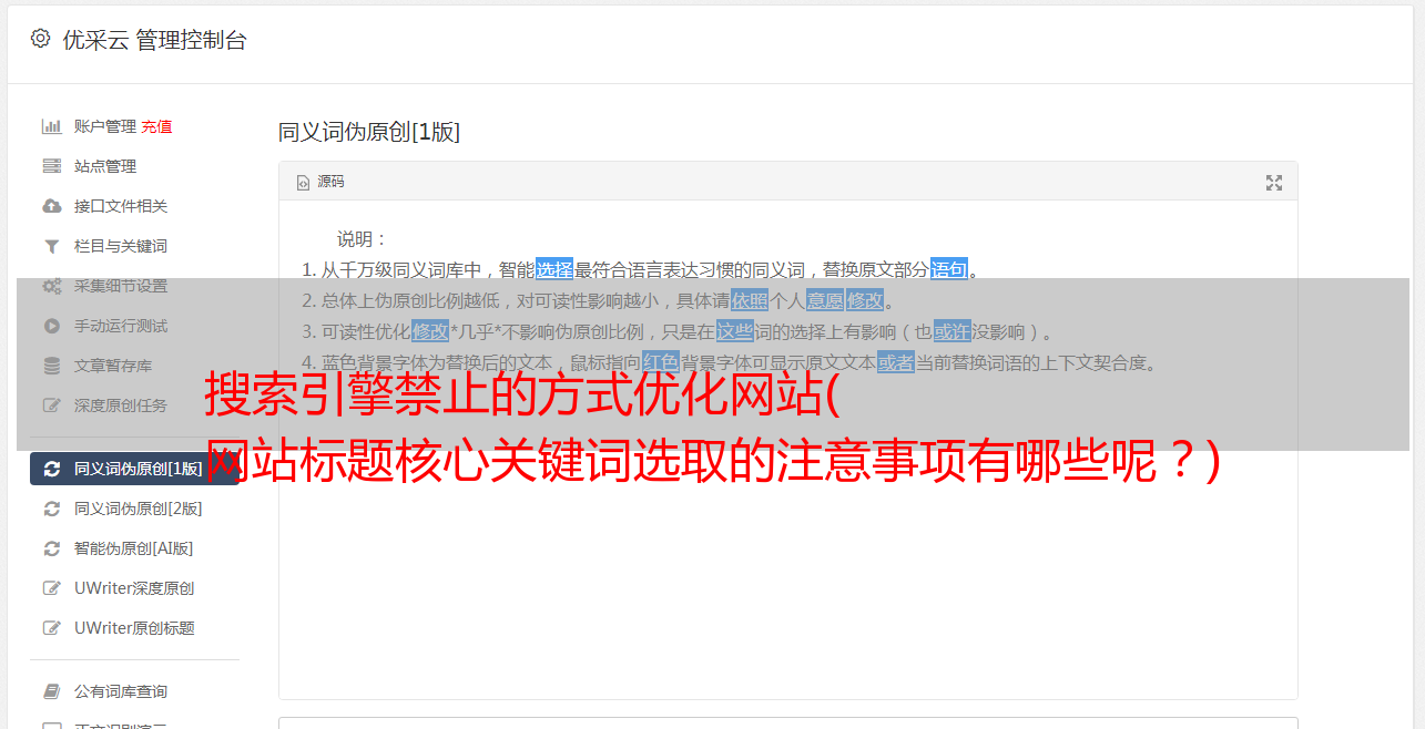 搜索引擎禁止的方式优化网站( 网站标题核心关键词选取的注意事项有哪些呢?)