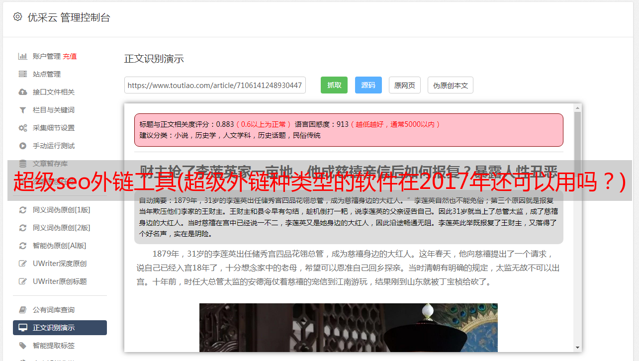 优采云 发布时间: 2021-09-21 08:18超级seo外链工具(超级外链种类型的软件在2017年还可以用吗?)