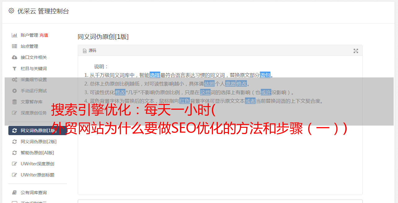 优采云 发布时间: 2021-09-21 13:01搜索引擎优化:每天一小时(