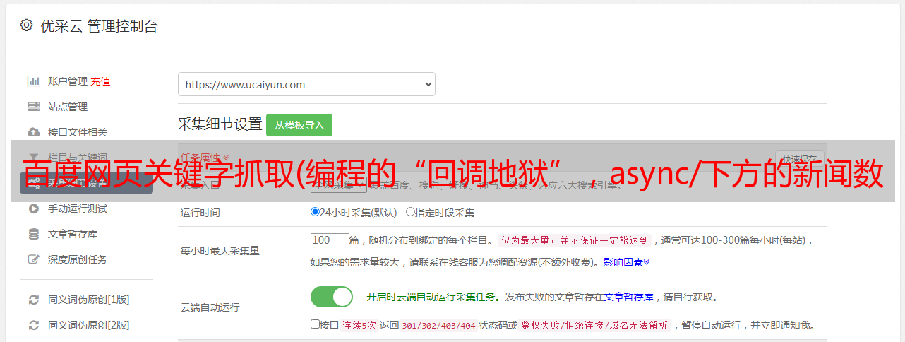 优采云 发布时间: 2021-09-21 14:04百度网页关键字抓取(编程的“回调地狱”,async/下方的新闻数据)