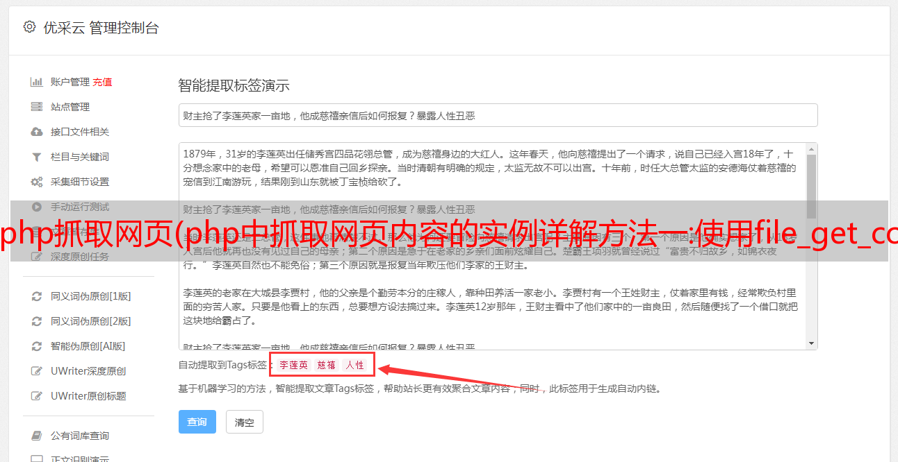 优采云 发布时间: 2021-09-21 15:14php抓取网页(php中抓取网页内容的实例详解方法一:使用file_get_contents方法