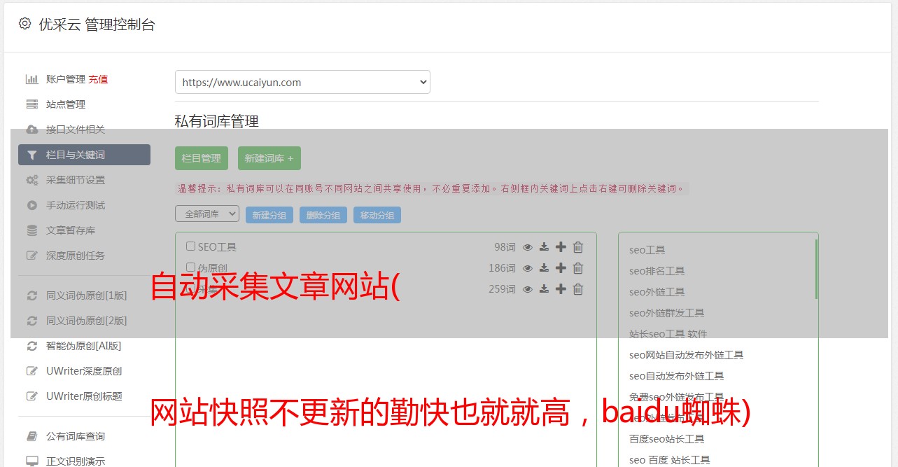 自动采集文章网站( 网站快照不更新的勤快也就就高,baidu蜘蛛)