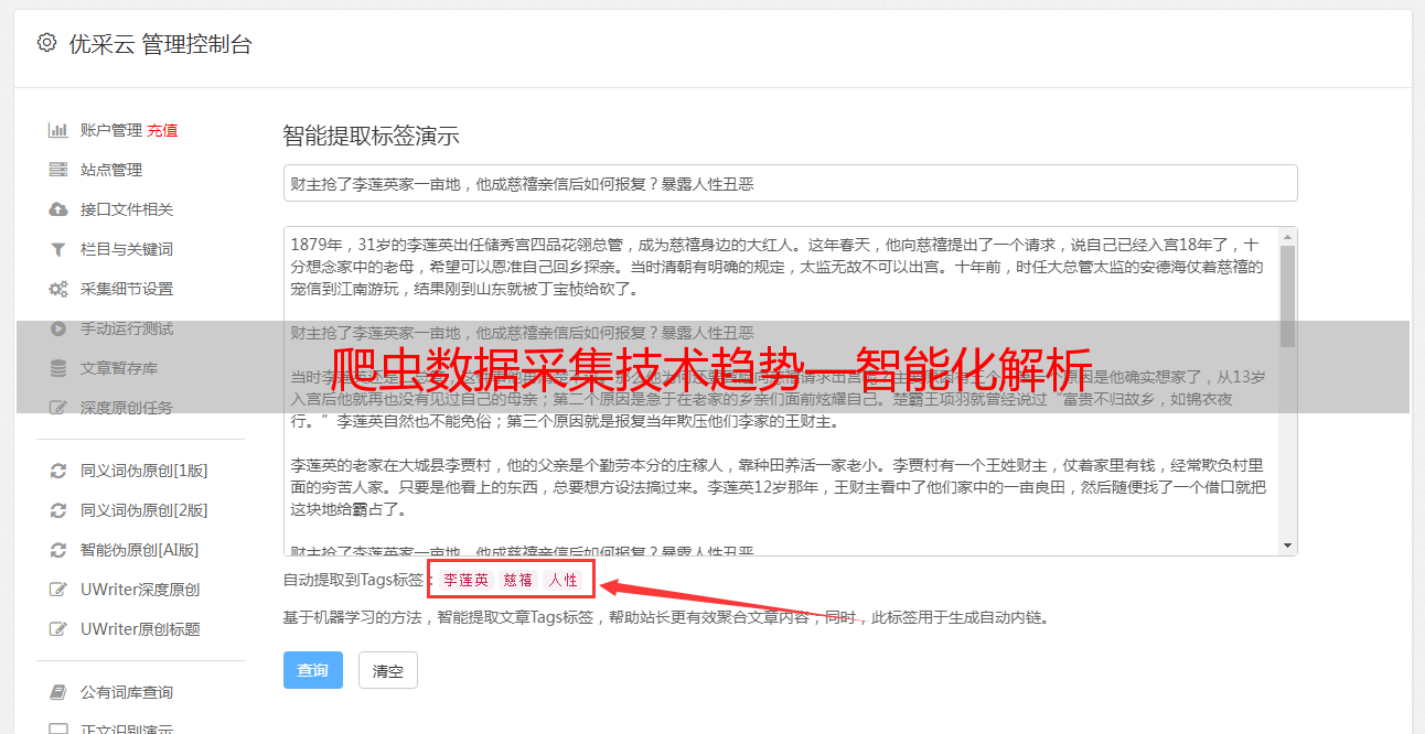 优采云 发布时间: 2020-08-26 04:21爬虫数据采集技术趋势—智能化解析