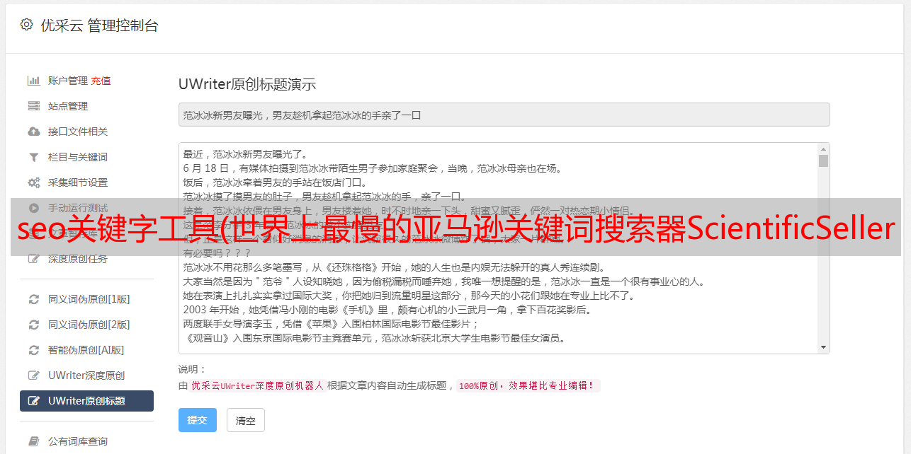 优采云 发布时间: 2021-09-22 23:20seo关键字工具(世界上最慢的亚马逊关键词搜索器ScientificSeller给大家!