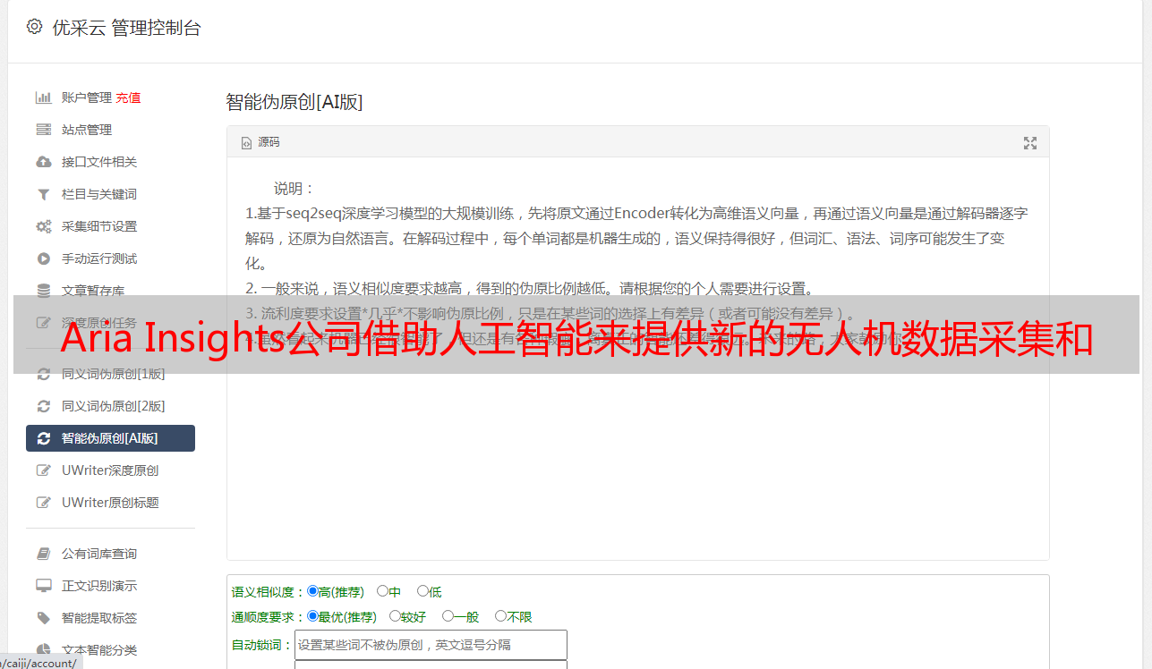 优采云 发布时间: 2020-08-26 04:52Aria Insights公司借助人工智能来提供新的无人机数据采集和剖析服务