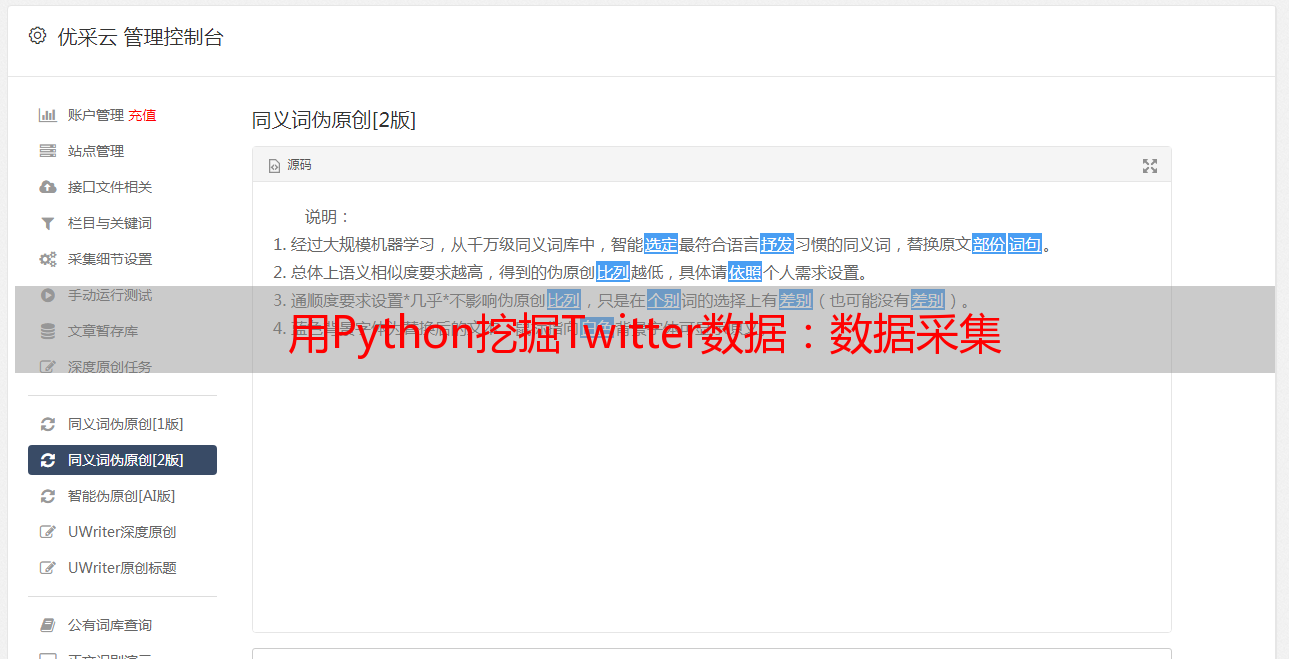 优采云 发布时间: 2020-08-26 04:59用Python挖掘Twitter数据:数据采集