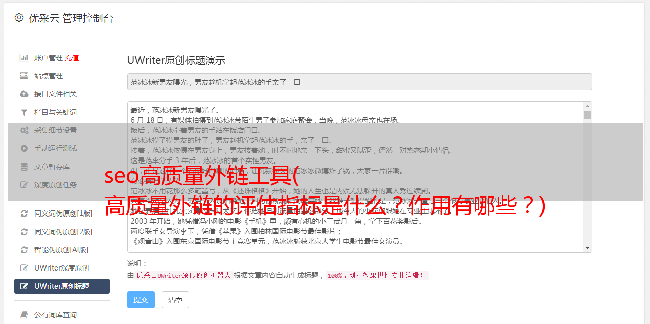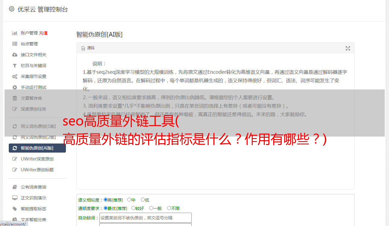 优采云 发布时间: 2021-09-23 15:11seo高质量外链工具(
