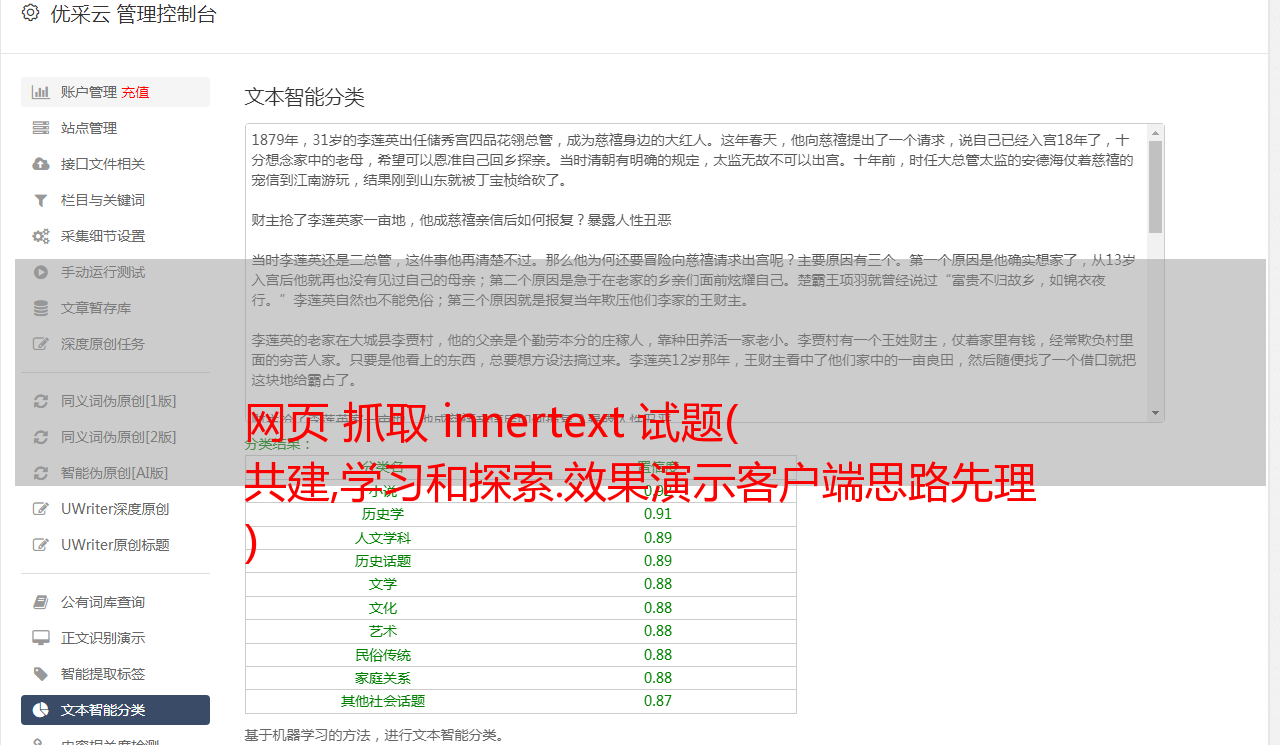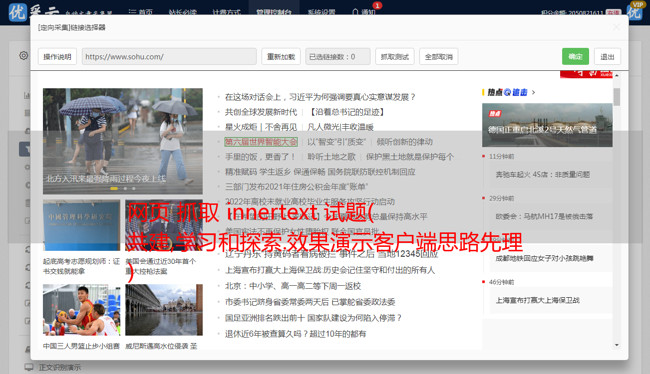 网页 抓取 innertext 试题( 共建,学习和探索.效果演示客户端思路先理 )
