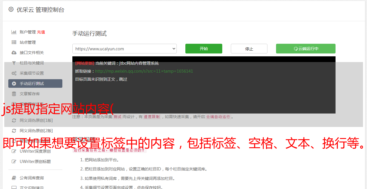 优采云 发布时间: 2021-09-24 11:18js提取指定网站内容(