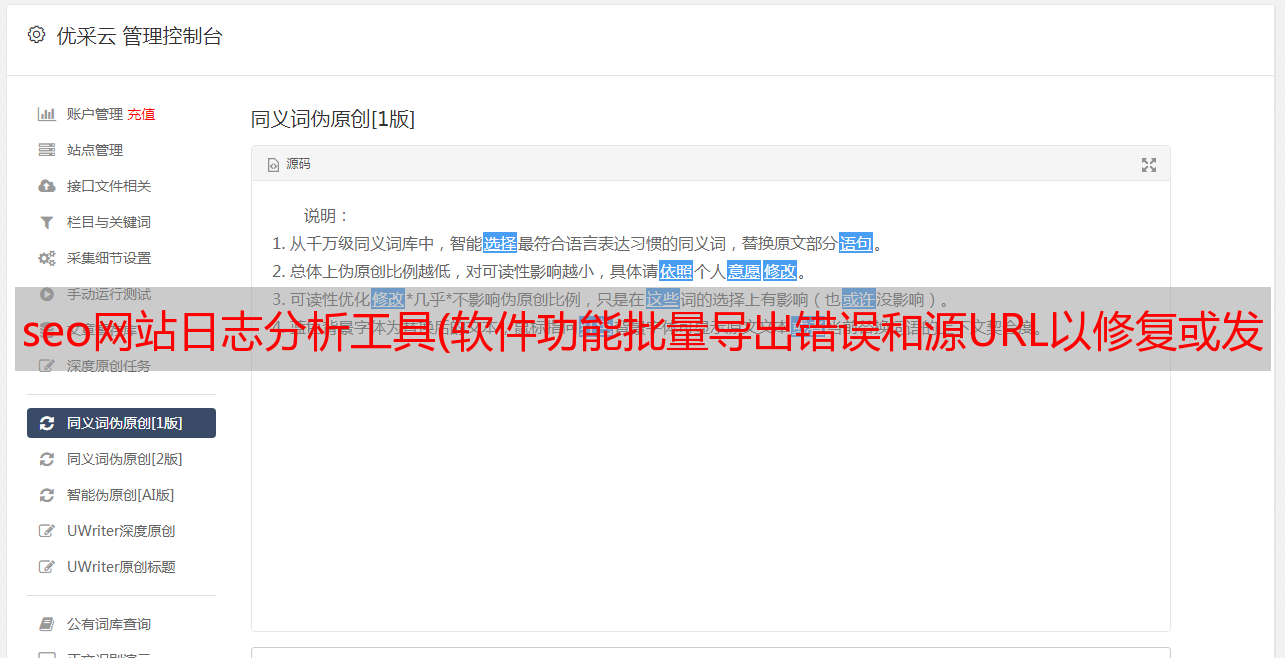 优采云 发布时间: 2021-09-24 16:03seo网站日志分析工具(软件功能批量导出错误和源URL以修复或发送给URL)