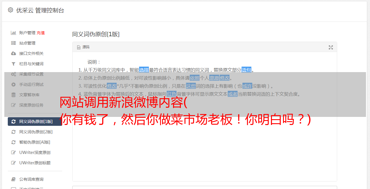 网站调用新浪微博内容( 你有钱了,然后你做菜市场老板!你明白吗?)