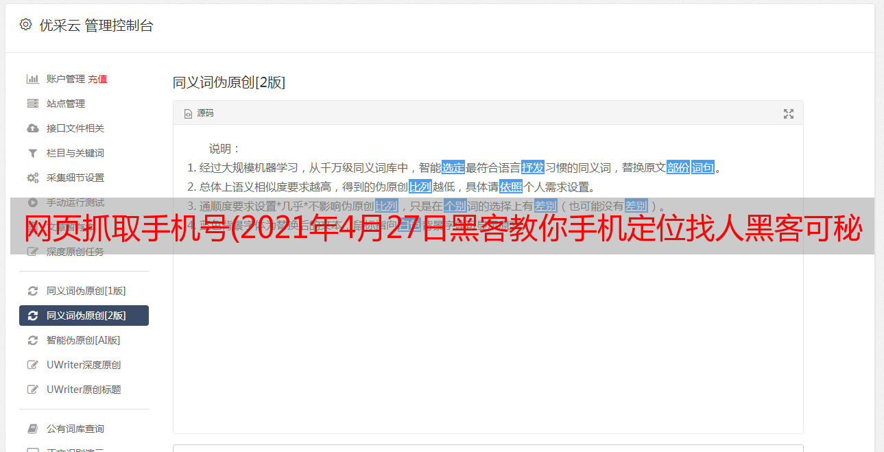 优采云 发布时间: 2021-09-25 00:04网页抓取手机号(2021年4月27日黑客教你手机定位找人黑客可秘密追踪)
