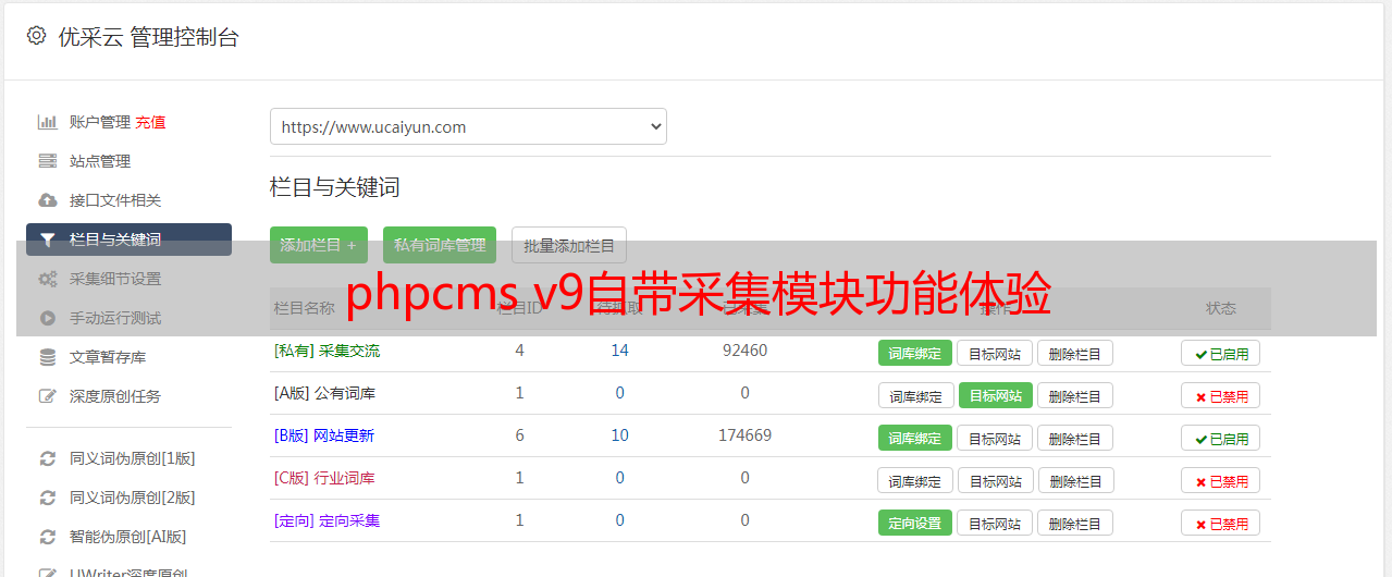 优采云 发布时间: 2020-08-26 14:35phpcms v9自带采集模块功能体验