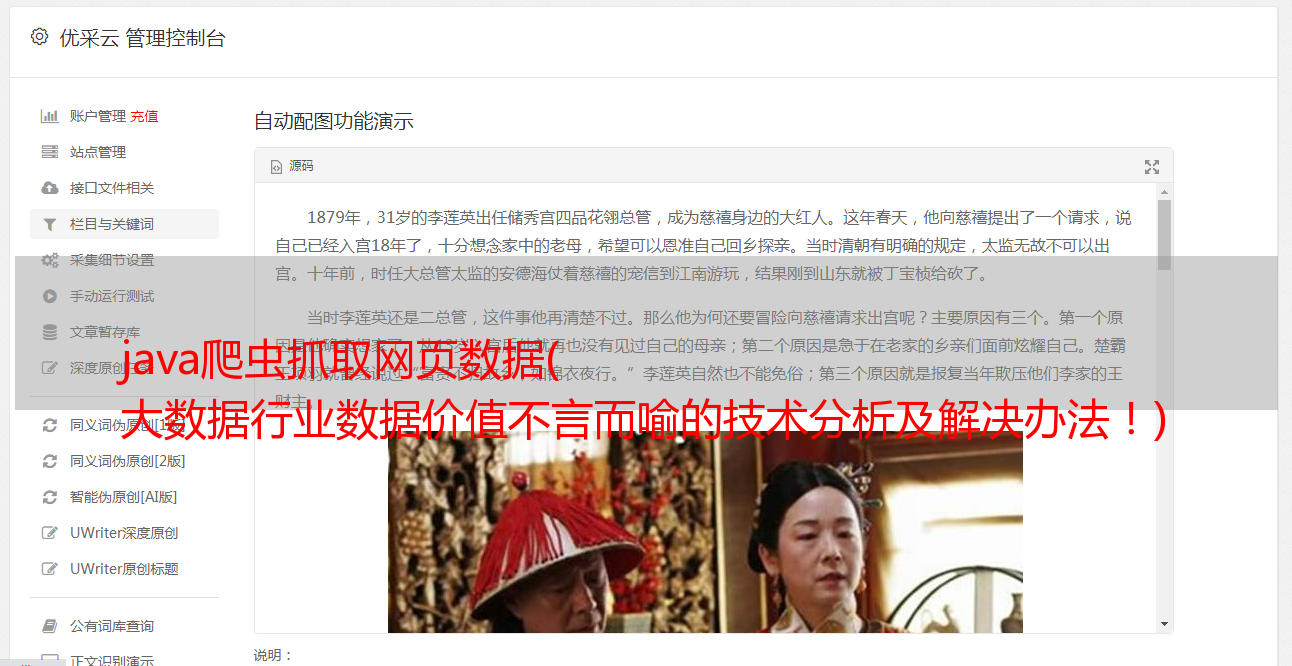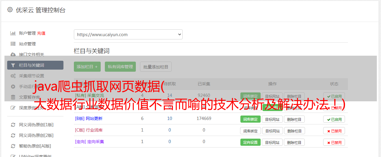 网络爬虫系统的作用是下载网页数据,为搜索引擎系统提供数据源。许多大型互联网搜索引擎系统被称为基于Web数据的搜索引擎系统,如谷歌和百度。这说明了网络爬虫系统在搜索引擎中的重要性。除了供用户阅读的文本信息外,网页还收录一些超链接信息。网络爬虫系统通过网页中的超链接信息不断获取网络上的其他网页。正是因为这个采集进程就像一个爬虫或蜘蛛在网络上漫游,所以被称为网络爬虫系统或网络蜘蛛系统,英文称为Spider或Crawler。