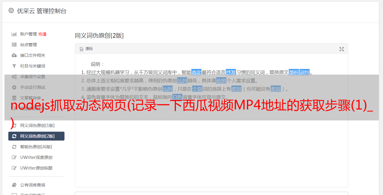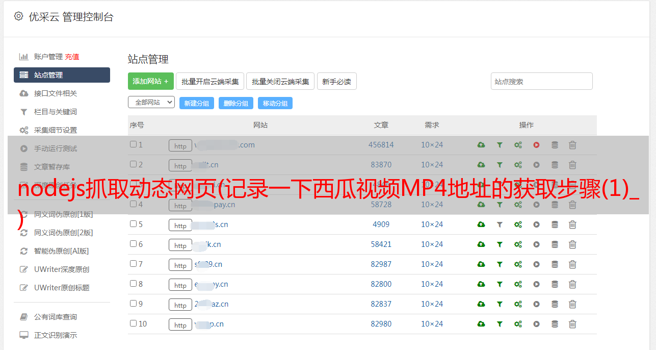 优采云 发布时间: 2021-09-25 03:07nodejs抓取动态网页(记录一下西瓜视频MP4地址的获取步骤(1)_