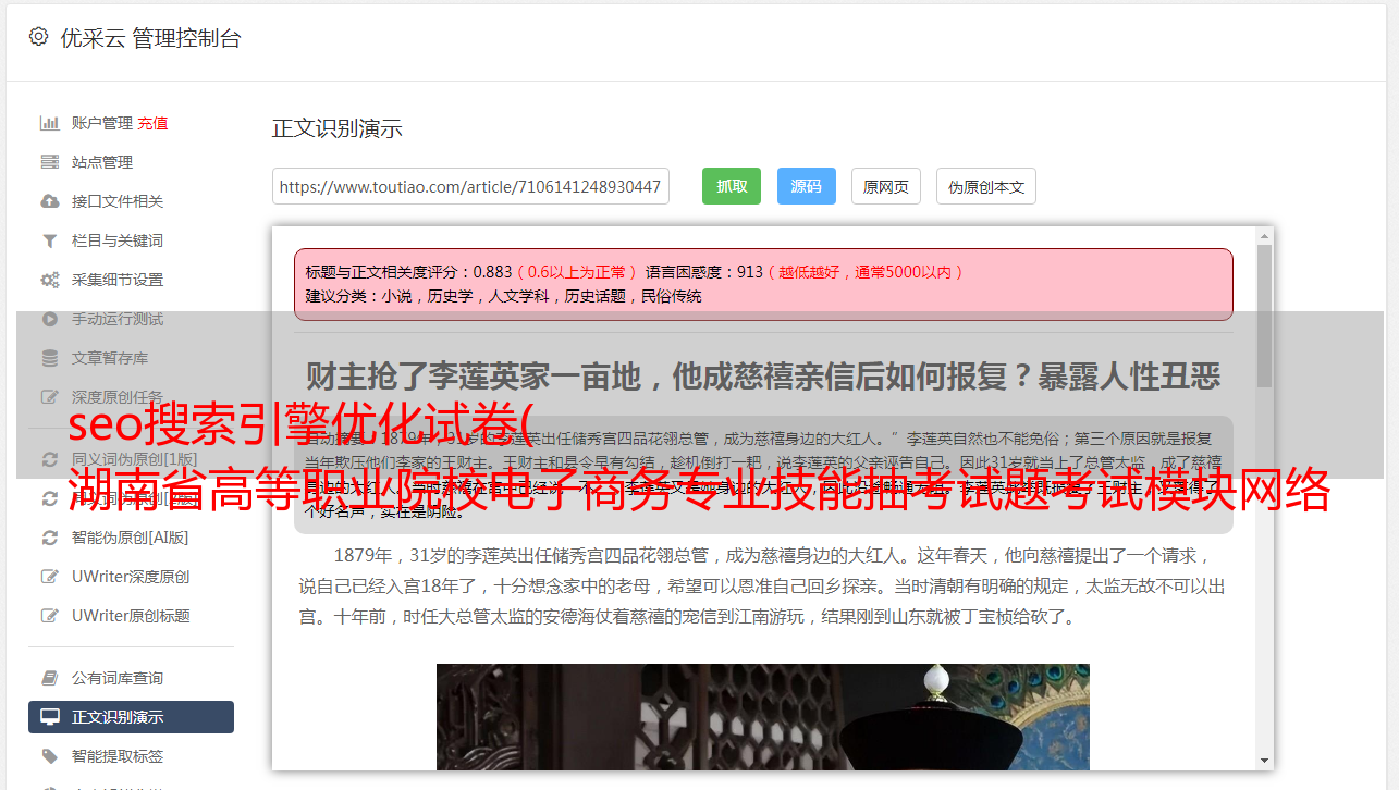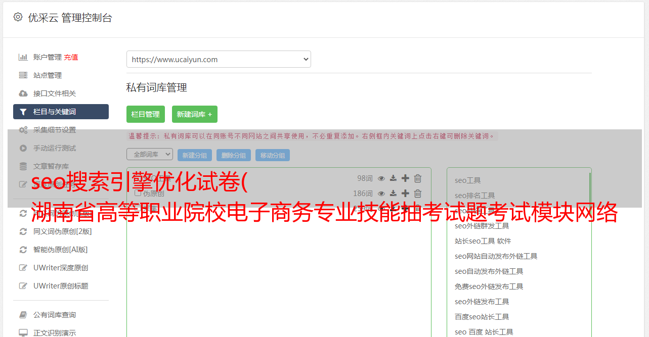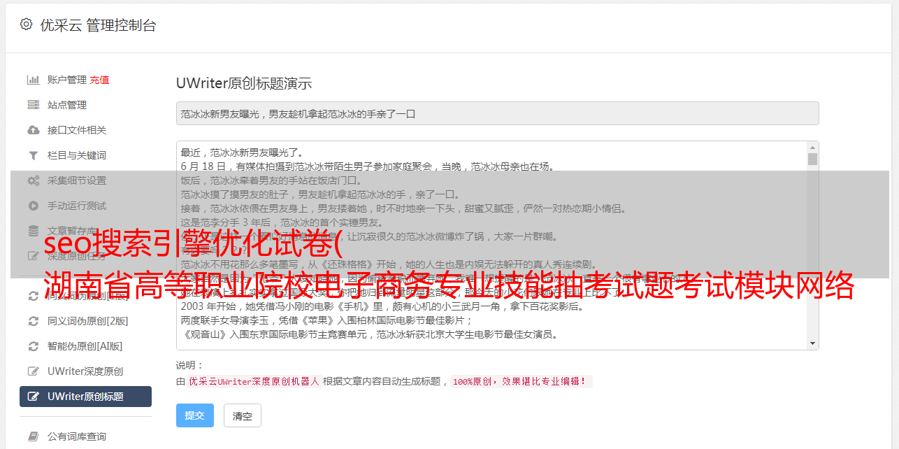 seo搜索引擎优化试卷( 湖南省高等职业院校电子商务专业技能抽考试题考试模块网络推广考核项目)