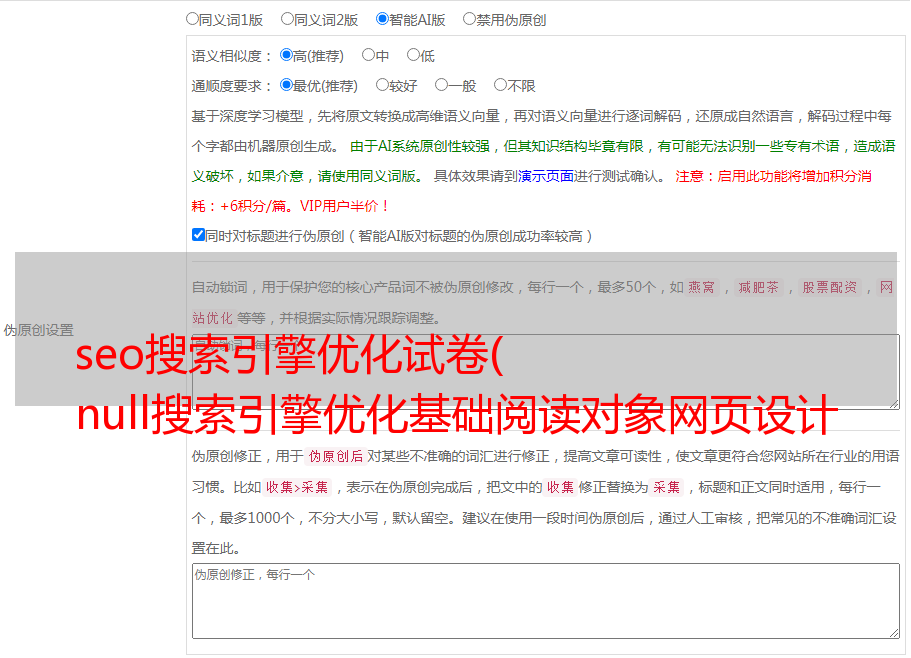 seo搜索引擎优化试卷( null搜索引擎优化基础阅读对象网页设计与开发人员SEO)