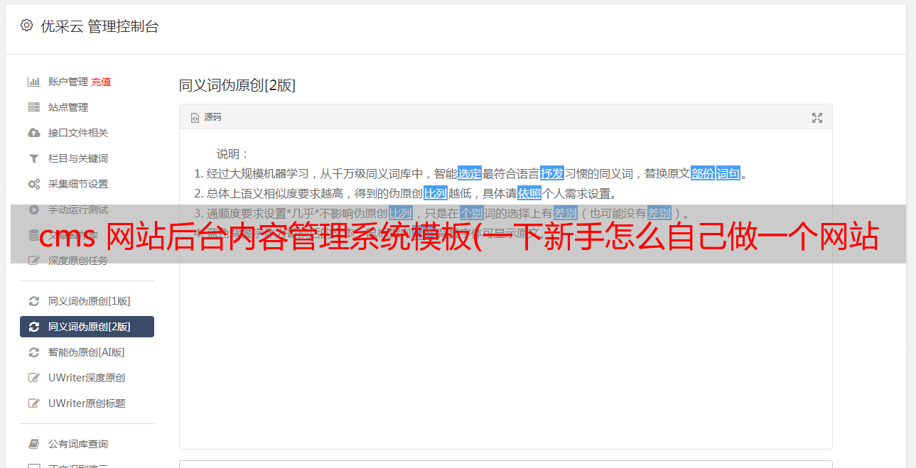 优采云 发布时间: 2021-09-25 09:30cms 网站后台内容管理系统模板(一下新手怎么自己做一个网站物业管理系统网站模板系统)