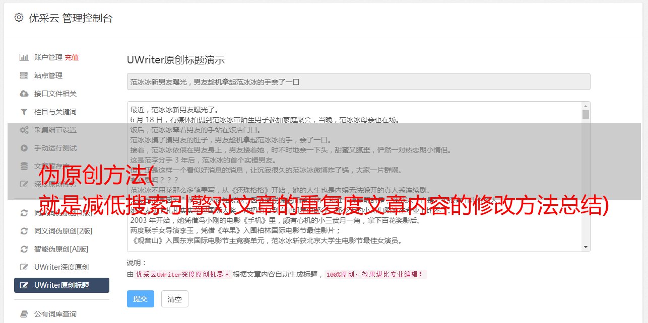 就是减低搜索引擎对文章的重复度文章内容的修改方法总结)