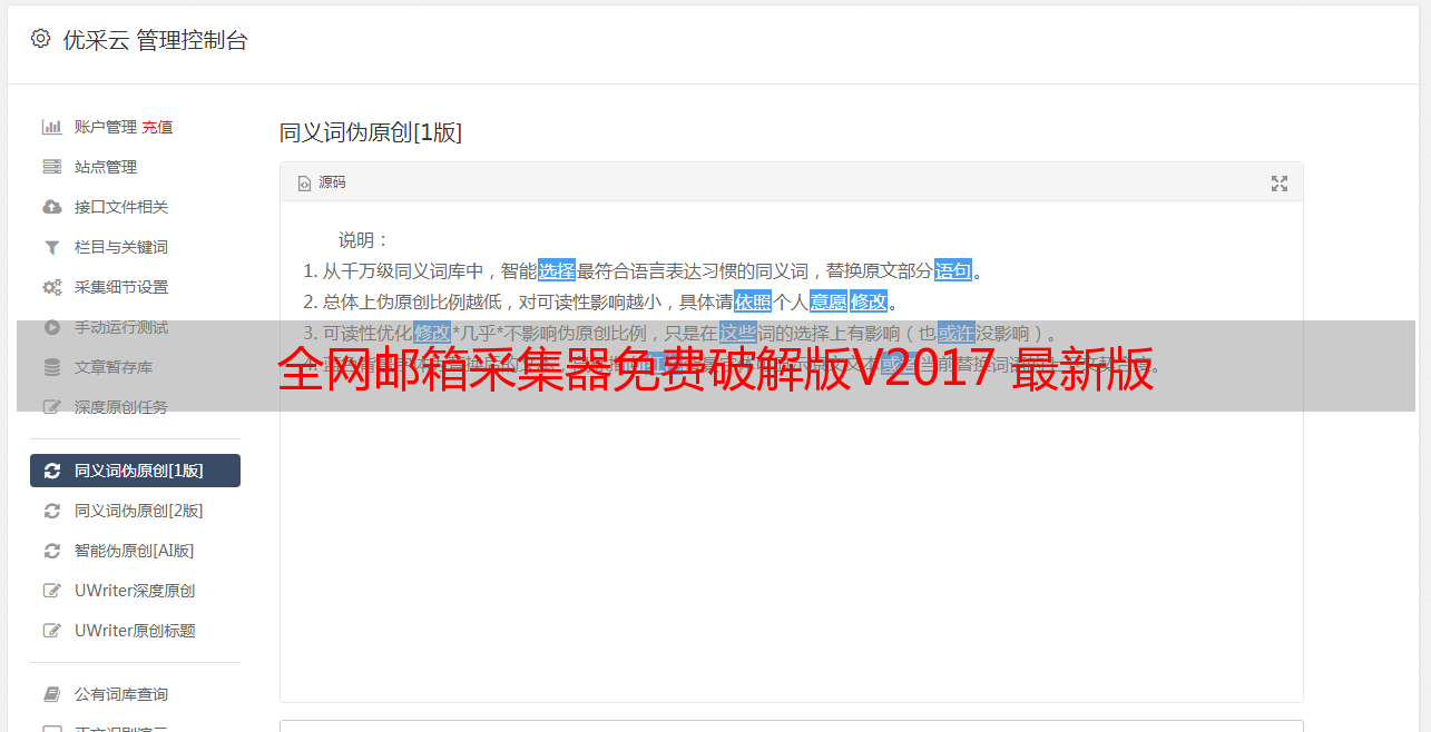 优采云 发布时间: 2020-08-26 18:10全网邮箱采集器免费破解版V2017 最新版