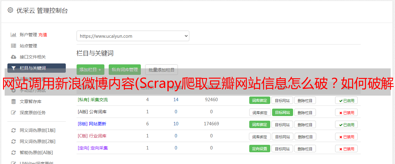 优采云 发布时间: 2021-09-26 00:05网站调用新浪微博内容(Scrapy爬取豆瓣网站信息怎么破?如何破解HTTP请求