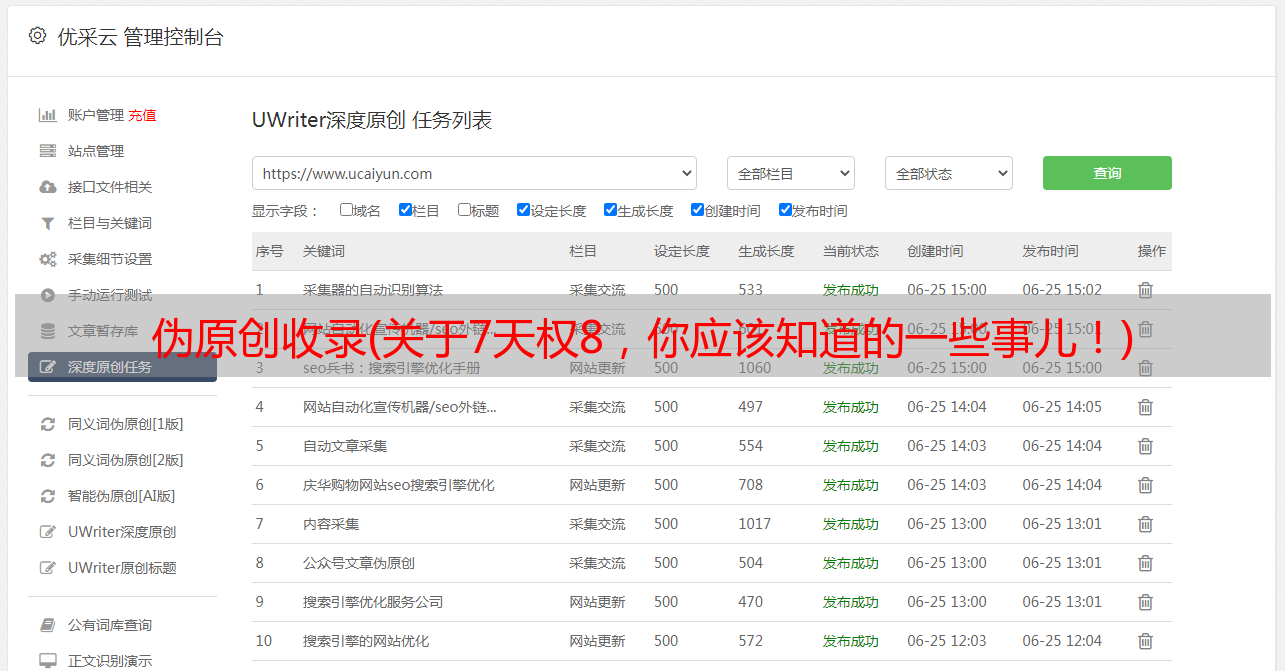 先说网站文章不用伪原创这块,那关于伪原创,在网上,各大seo群里,也有比较多的讨论。话题,毕竟网站还是靠文章吃饭,有没有文章可谈收录?毕竟,收录 越多,只要词库发布高,权重就越大。但是,如果我个人做一些文章,如果你手动复制粘贴,非常非常累人,而且速度也没有太大提升,所以很多大佬想到了采集软件,通过市面上的一些采集器比如优采云等等,有的大佬做了很多伪原创,有的有排名,有的没有,那你就分析一下是否需要做还是不做?