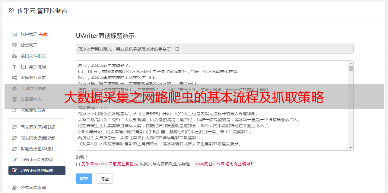 本篇教程阐述了大数据采集之网路爬虫的基本流程及抓取策略,希望阅读本篇文章以后你们有所收获,帮助你们对相关内容的理解愈发深入。