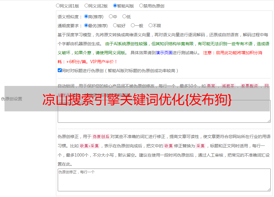 以“搜索引擎排名”为关键词输入百度后,网页标题及标题下方的描述性文字若出现了相同字样则会被标红。而网站为了做好这一布局通常会通过撰写SEO文章来实现。撰写SEO文章时,网站通常会遵循"四处一词"的基本。其一在标题中须要出现关键词;其二在网页的描述现关键词;其三在网页的文本中多次出现关键词,并在次出现关键词时加粗字体,起指出作用;后在页面的锚文本现关键词。【发布狗云平台】