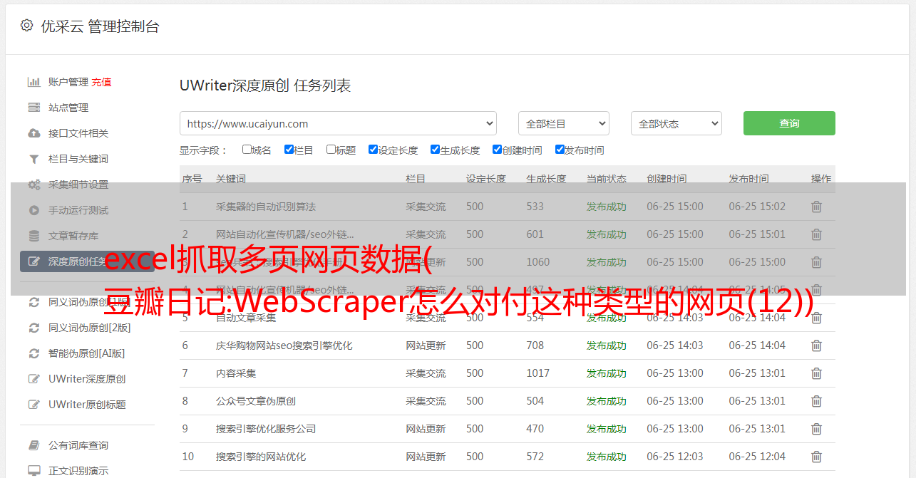 优采云 发布时间: 2021-09-26 22:06excel抓取多页网页数据(
