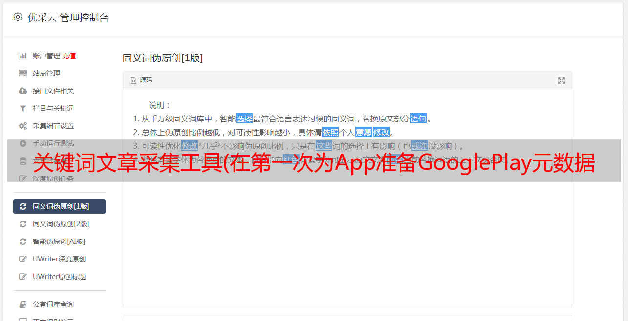 优采云 发布时间: 2021-09-26 22:18关键词文章采集工具(在第一次为App准备GooglePlay元数据时,你可能根本无从下手)