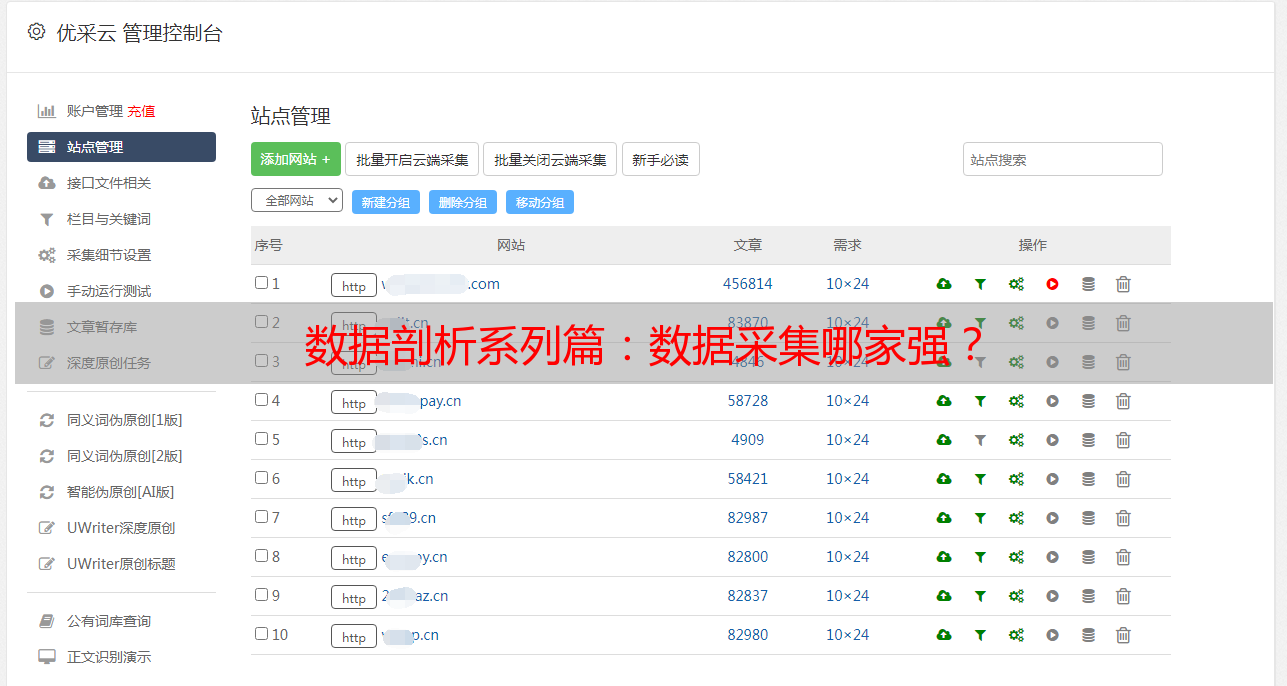 优采云 发布时间: 2020-08-27 02:44数据剖析系列篇:数据采集哪家强?