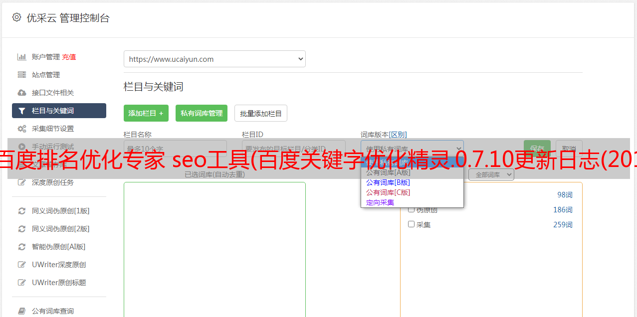 优采云 发布时间: 2021-09-27 16:00百度排名优化专家 seo工具(百度关键字优化精灵.0.7.10更新日志(2019-05-10))